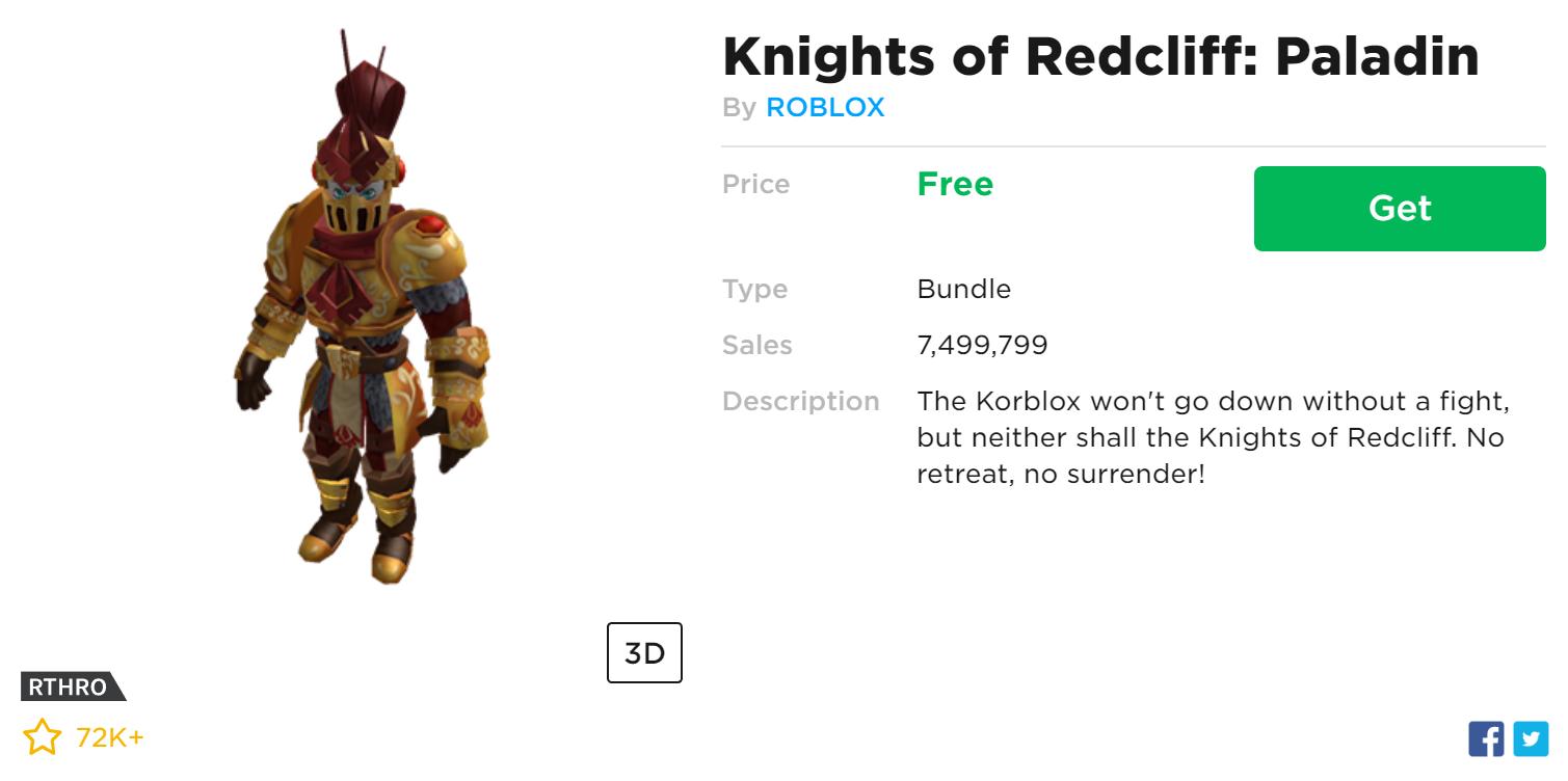 Paladin is an rthro bundle that was published into the avatar shop by roblox on october 23 2018. Paladin bundle but can also be obtained separately for free. It is a part of the redcliff series. As of october 10 2019 it has been purchased 5116524 times and favorited 50333 times.